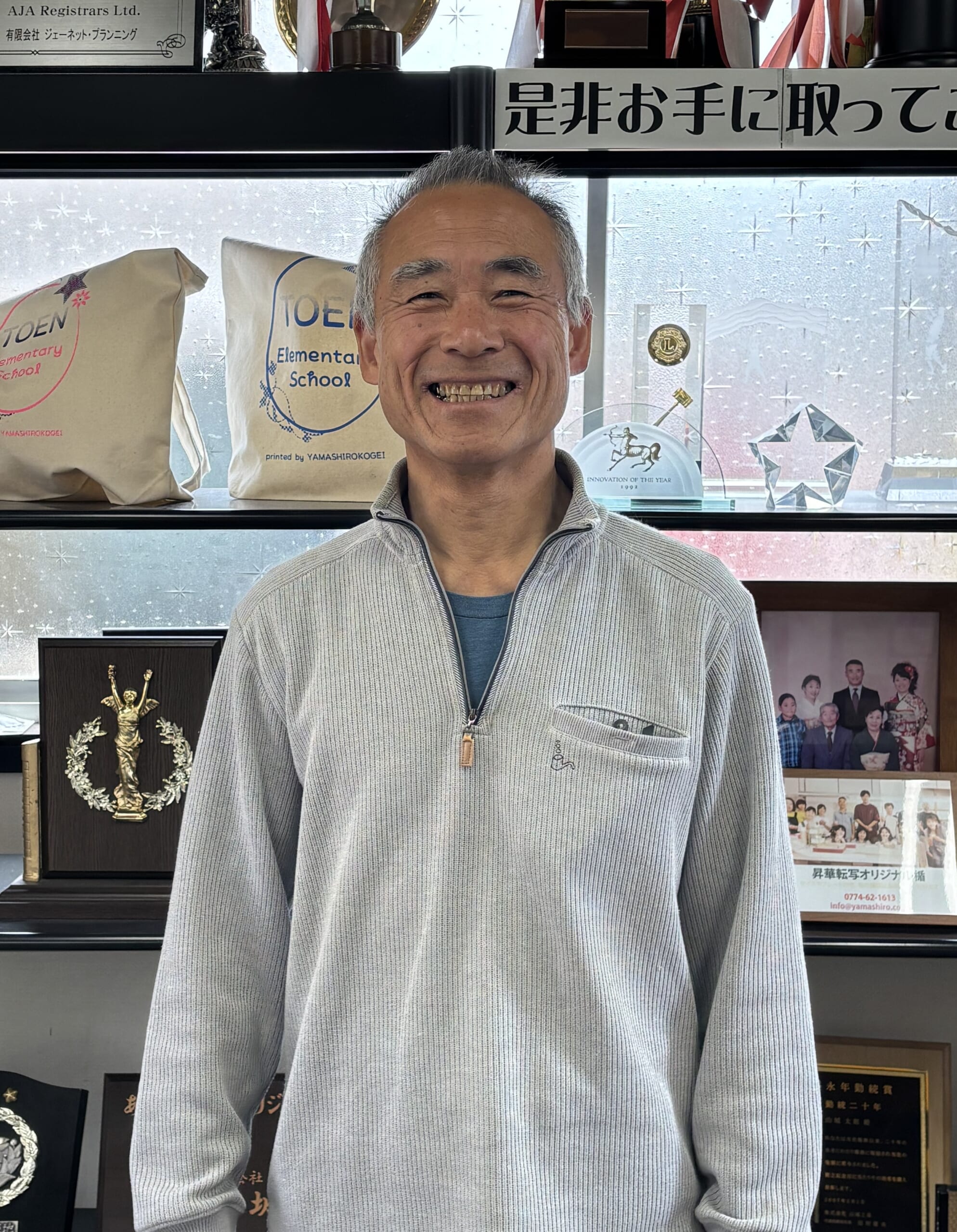 十数年前に楯板製造を内製から外注中心に移行、それと同時に製造プロセスを見直し、シルク印刷(Tシャツ・バッグ等)を開始。楯板製造というハード面から表彰文や名入れといったソフト面を自社のコアと再定義し、刻印・印刷技術・運用を強化。表彰用品に限らず、アパレルや雑貨へのオリジナルプリントなどに展開し、市場機会を拡大。媒体横断で価値提供を拡張し事業を行っております。