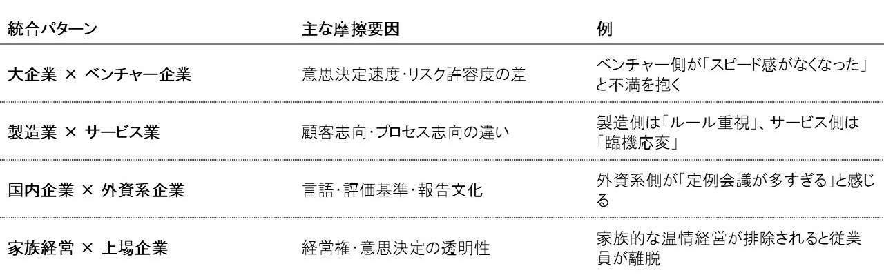 特に買収された側の従業員は、「自社文化が消えるのでは」というアイデンティティ喪失感を抱く傾向があります。